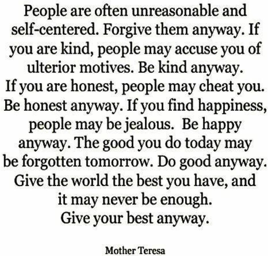 Mother Teresa may be right… but doing it anyway, giving your best anyway, may be a really uphill struggle, unless… unless you set the context. She did… masterfully, and she made people “